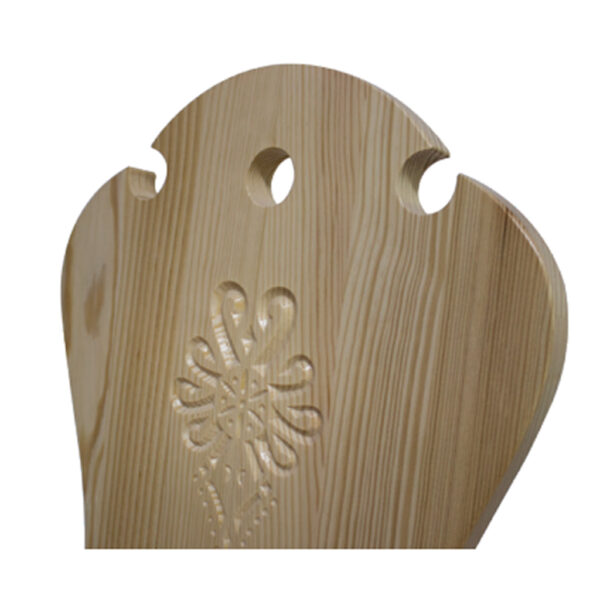 Krzesło w góralskim stylu z wygrawerowaną parzenicą.